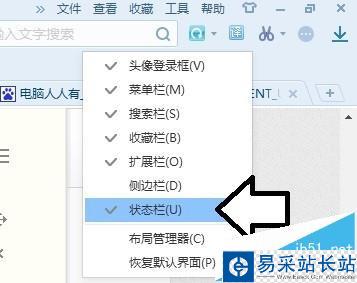 2、如果沒有顯示,使用鼠標右鍵點擊搜狗瀏覽器的右上方空白處→點選一下狀態欄即可(打鉤)。