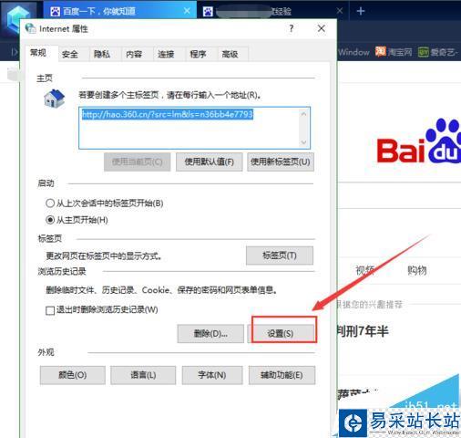 4、然后在這個Internet 屬性窗口中,點擊【設置】。