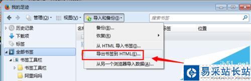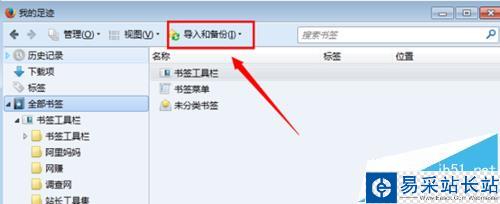 2、出現的書簽管理器找到,找到“導入和備份”功能如箭頭位置