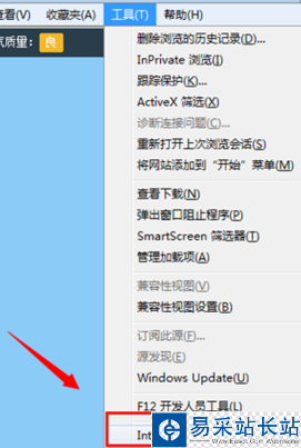 1) 在IE菜單欄中單擊“工具”->“Internet選項(xiàng)”,