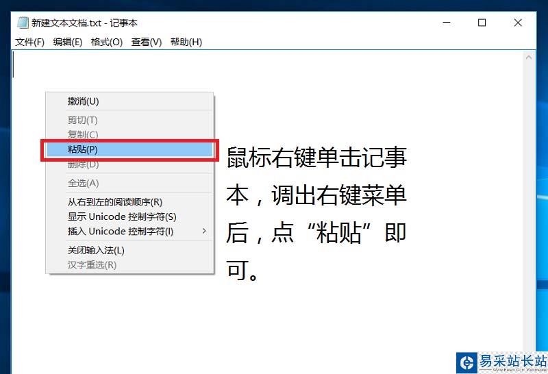 5、然后打開記事本,鼠標右鍵單擊記事本空白區域,然后在右鍵菜單中點“粘貼”,就可得到網上圖片的鏈接了。