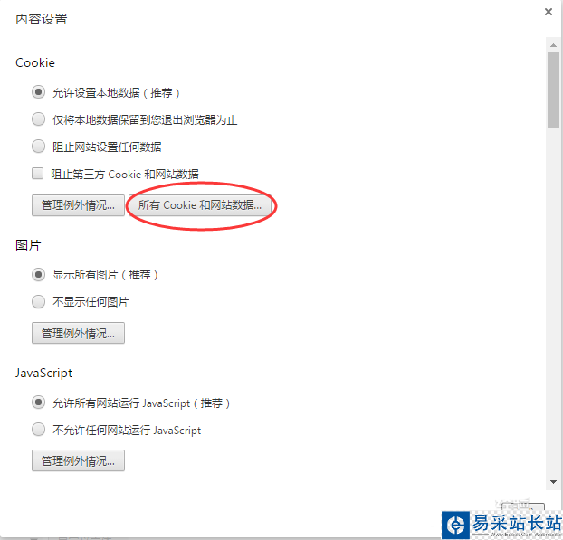4、從彈出來的界面選擇-》所有cookie和網站數據...