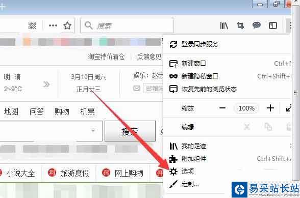 2、點擊右上方菜單項彈出的下拉菜單,選擇選項,如圖所示。
