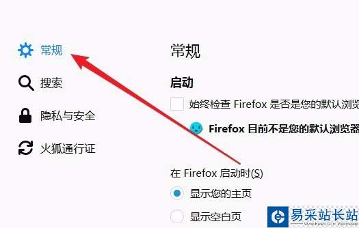 3、這時會打開Firefox瀏覽器的選項窗口,點擊左側邊欄的“常規”選項卡