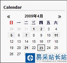 示例一:麥田守望者博客的左側(cè)日歷欄