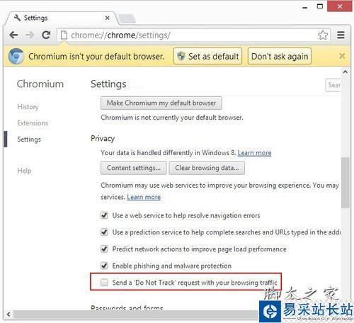 事實上,Google在2011年就已經為Chrome瀏覽器開發(fā)了Keep My Opt-Outs(不追蹤私隱資訊)的附加元件,直到2012年,才將這一功能加入到瀏覽器中。用戶啟動“Do Not Track”之后,Chrome便不會再追蹤用戶的任何行為和信息,可以有效保護用戶數據不被廠商知曉,從而實現保護個人隱私的作用。