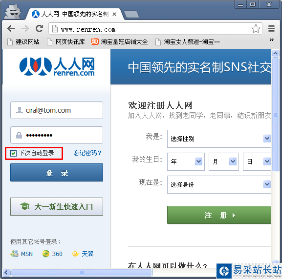 2.在網(wǎng)站登錄頁面輸入賬戶信息,勾選“下次自動登錄”,點擊登錄。