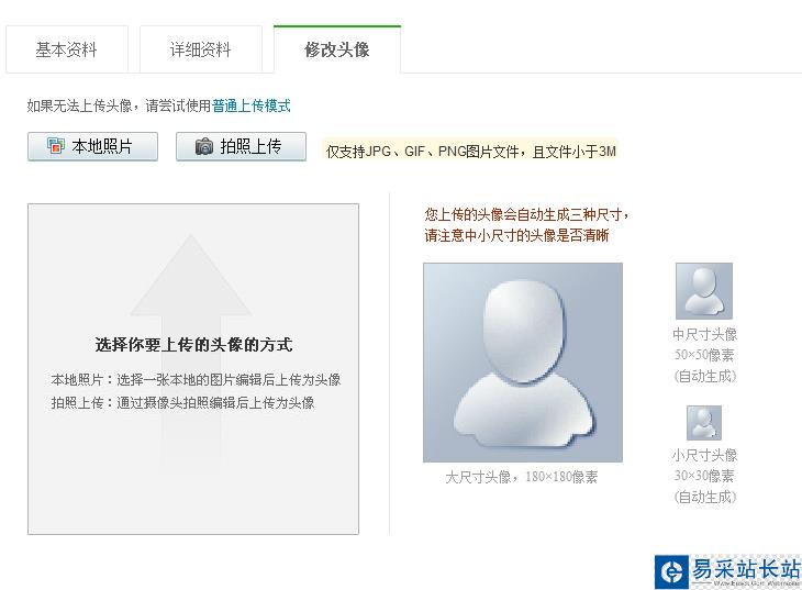 3.上傳頭像,自定義設置即可,和qq頭像設置差不多