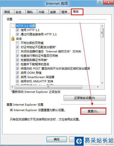 Step 2 - 選擇“高級”選項卡,然后點擊下方的“重置”(重置Internet Explorer 設置);