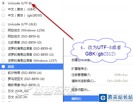 ie點擊右鍵--編碼 其他的瀏覽器 查找瀏覽器菜單--工具選項----編碼。