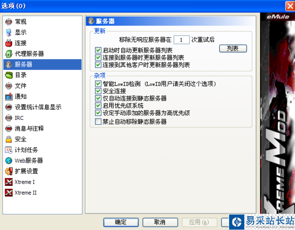 (2)eMule電騾默認開啟“智能LOW ID檢測”,這個功能的作用是,當你連接到一個ed2k服務器,獲得的是Low ID的情況下,以重新連接服務器的方式嘗試著獲得High ID。有些時候這個功能是有用的,但是,嘗試是有次數限制的,對于一直是Low ID的用戶,這個功能在多次嘗試連接到服務器都是Low ID的情況會切斷你和ed2k服務器的連接。所以,連接不上服務器的時候可以試驗著關閉這個功能。