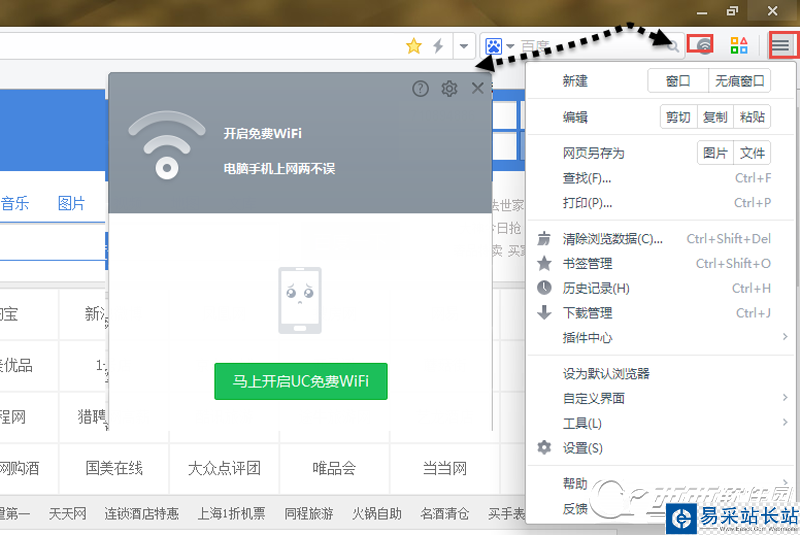 4、繼續上圖,uc瀏覽器電腦版增加了wifi功能,可以使其他設備共享網絡