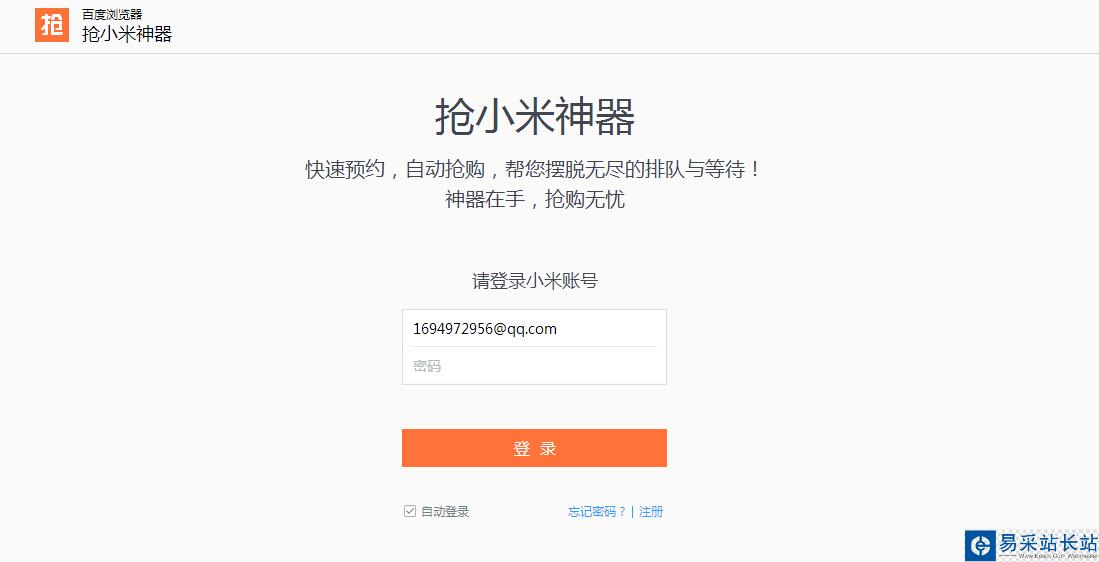 2.登陸:點擊粗糧插件,就能快速進入小米登陸頁面了啦!
