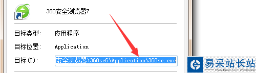1、在360瀏覽器的桌面快捷方式圖標上點擊鼠標右鍵,打開屬性窗口,如下圖所示: