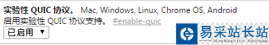 搜索QUIC,找到實(shí)驗(yàn)性QUIC協(xié)議,設(shè)為啟用,重啟Chrome。
