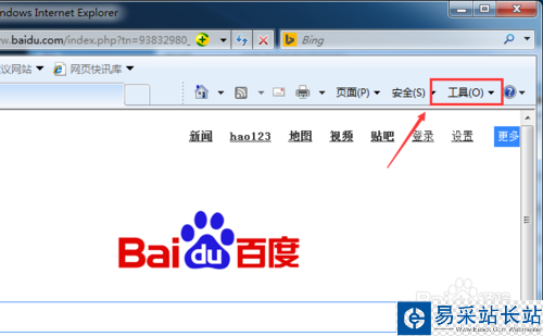 1、開IE瀏覽器后,將彈出框關閉后,點擊IE瀏覽器右側導航上的工具,如下圖所示。