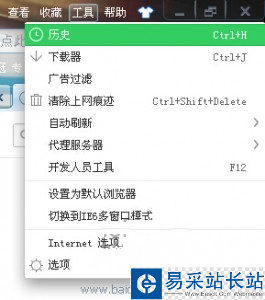 也有普通方法:點(diǎn)擊360瀏覽器右上角的“工具”,再點(diǎn)擊“歷史”。