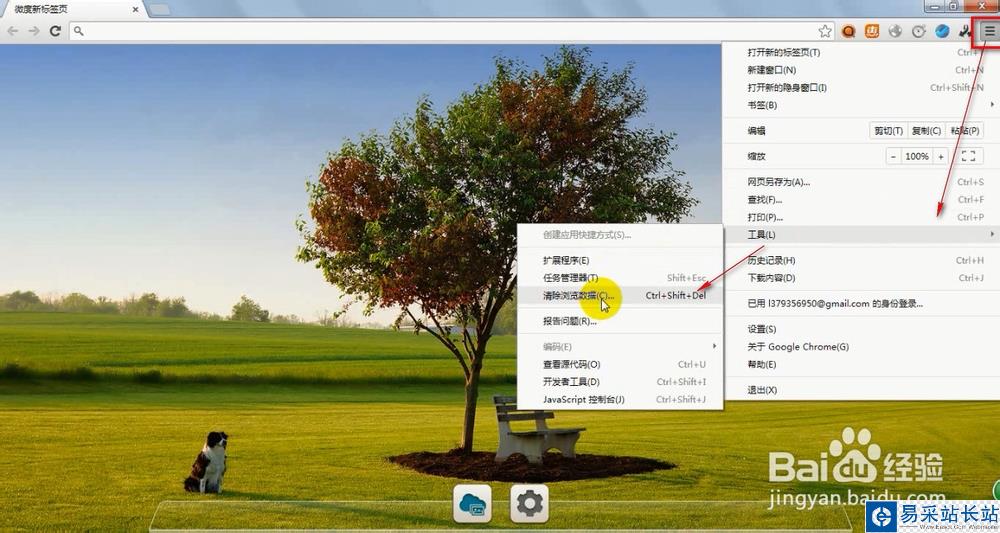 依次點擊瀏覽器右上角的菜單鍵-工具-清除瀏覽數(shù)據(jù)
