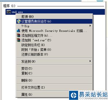 第四步:在開始菜單搜索"cmd" 在"cmd"上右鍵以管理員身份運行,在彈出確認(rèn)的窗口里點“是”