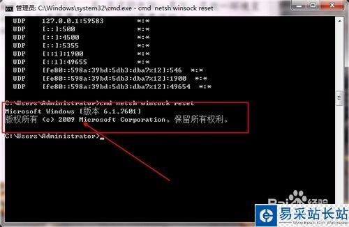 5、再一次輸入第一條命令就ok了。重啟電腦Google和Ie就可以上網了