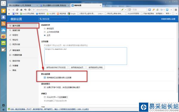 步驟四:設置===基本設置===保持傲游云瀏覽器為默認瀏覽器