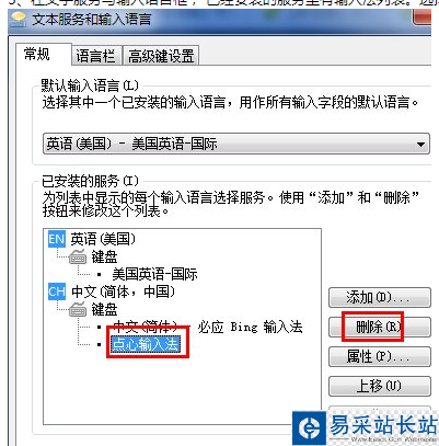 方法六:有些小的輸入法會導致瀏覽器奔潰(例如:點心,速浪,萬能,小晨,速拼等)大家可以更換其他輸入法或者在在文字服務與輸入語言框, 已經安裝的服務里有輸入法列表。選擇需要刪除的輸入法,點擊右邊的(刪除)