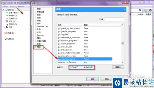 3、打開uTorrent ,選項(xiàng)->設(shè)置->高級