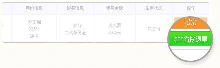 三、在12306訂單管理頁面找到想退的票 點擊“360省錢退票”