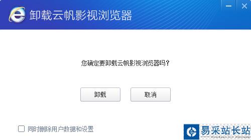 3、建議大家點上左下角的“同時刪除用戶數(shù)據(jù)和設(shè)置”,然后點擊卸載,這樣就可以徹底刪除云帆影視瀏覽器