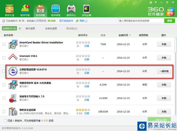 二、使用360軟件管家等軟件一鍵徹底卸載,會自動幫大家刪除殘留數(shù)據(jù)