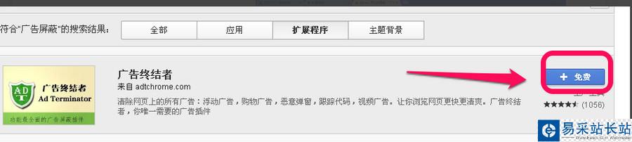 3、進入網上應用店之后,我們在左邊搜索欄里,搜索“廣告屏蔽”,右邊結果里,在擴展程序里尋找,適合我們自己的一款應用就可以了