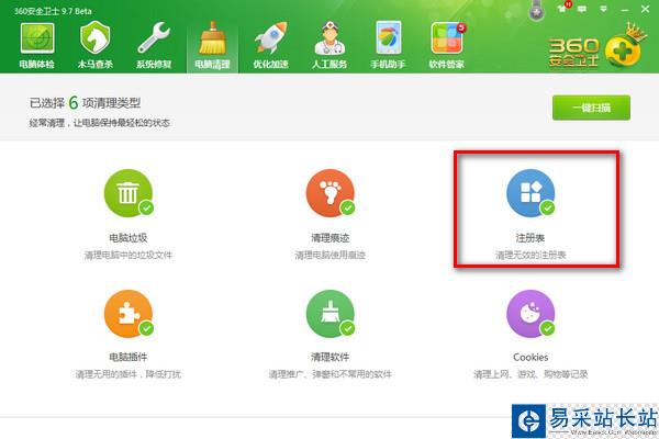2、如果還是發(fā)現(xiàn)有殘留文件,可以再使用360安全衛(wèi)士的注冊(cè)表清理功能,將UC瀏覽器的注冊(cè)表清除