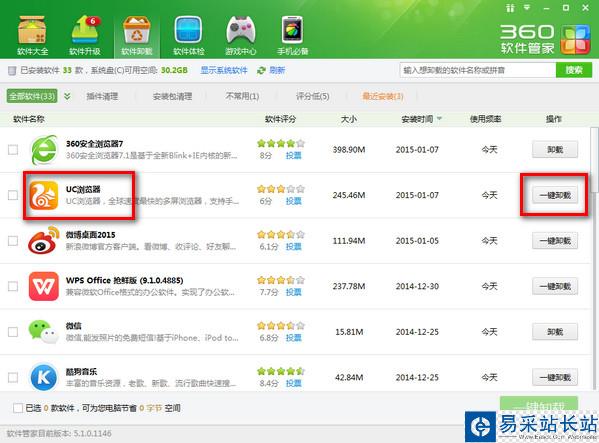 1、首先,建議大家用第三方軟件進(jìn)行卸載操作,不要用UC瀏覽器自帶的卸載程序,例如360軟件管家