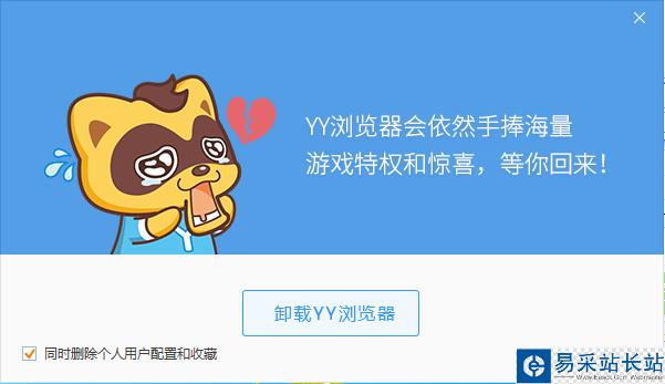 選擇“同時刪除個人用戶配置和收藏”點擊“卸載YY瀏覽器”這樣我們就卸載它啦