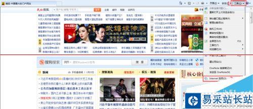 1、打開瀏覽器,點(diǎn)擊【工具】,選擇【Internet選項(xiàng)】