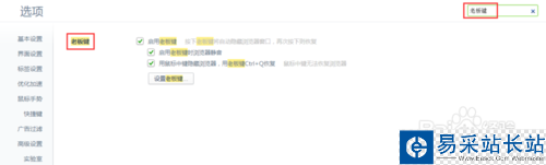 4、在該界面右側(cè)有搜素輸入框,在輸入框內(nèi)輸入“老板鍵”,即可搜素到老板鍵的設(shè)置了,通過(guò)搜索結(jié)果可見(jiàn)已開(kāi)啟老板鍵功能,如下圖所示。