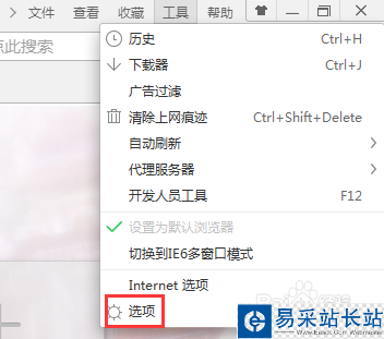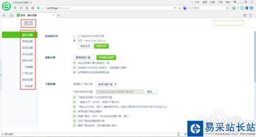 3、點(diǎn)擊下拉菜單里的【選項(xiàng)】功能,進(jìn)入360瀏覽器選項(xiàng)界面,如下圖所示。