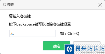 5、點(diǎn)擊下方的【設(shè)置老板鍵】,可以彈出老板鍵設(shè)置窗口,可設(shè)置任意按鍵作為老板鍵,但是不建議設(shè)置某一個(gè)按鍵作為老板鍵快捷鍵,因?yàn)槿绻俅蜃謺r(shí)摁到這個(gè)鍵時(shí)瀏覽器會(huì)自動(dòng)隱藏,因此建議設(shè)置一個(gè)組合按鍵,比如ctrl+Q。