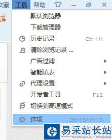 1、點擊瀏覽器菜單欄中的“工具“菜單,從中選擇”選項“項進入。