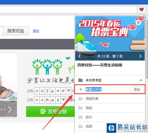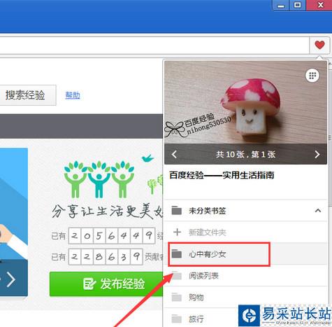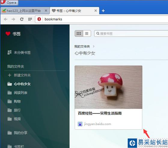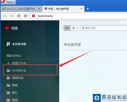 7、在書簽中,找到你剛才新建的 文件夾,如圖示。