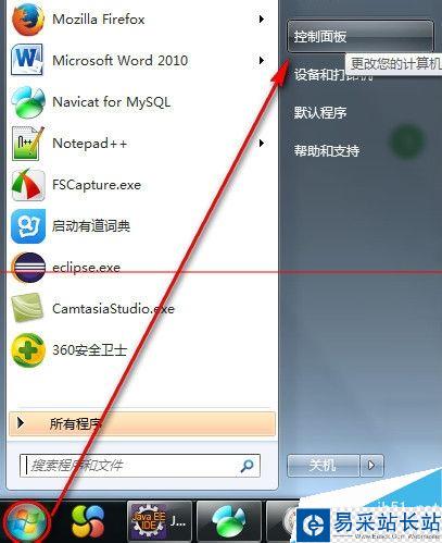 2、我們選擇“開始”→“控制面板”打開控制面板窗口。