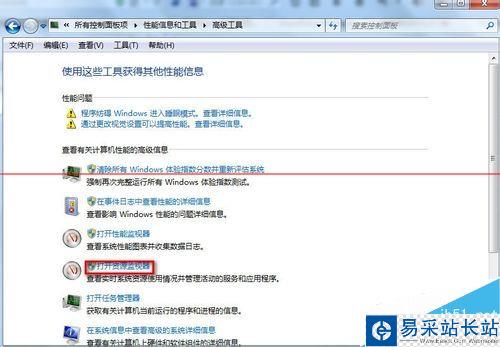 5、在打開的“高級工具”窗口中選擇“打開資源監視器”打開。
