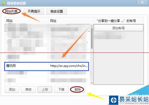 5、然后點擊該頁面右上角的設(shè)置圖標(biāo),在彈出的設(shè)置頁面,可以看到完整的網(wǎng)站名稱和網(wǎng)站地址,我們可以針對性的將一些不想保存密碼的網(wǎng)站刪除,這樣以后就不會直接登錄了