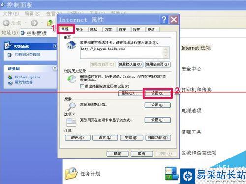 5,進入“Internet 選項”窗口后,在“常規”下面,找到瀏覽歷史記錄下的“設置”按鈕,單擊打開。