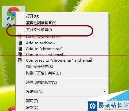 4、Chrome默認的安裝位置,可以通過右擊Chrome快捷方式圖標。點擊“打開文件位置”