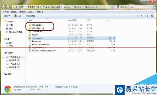 5、可以在文件夾中,找到以Chrome版本號命名的文件夾。如果這類文件夾不存在,說明被移動了,從而會導致更新失敗。