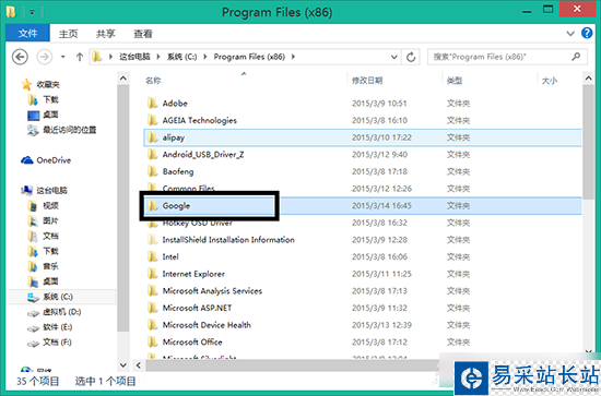 二、找到“Google”文件夾,將它移動到要更改的地方(我這里是E盤根目錄)。