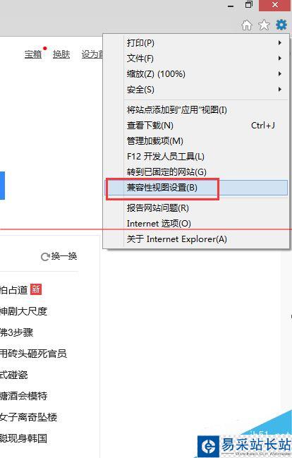 2、首先打開IE11瀏覽器,在右上角點擊“設置”,選擇“兼容性視圖設置”;