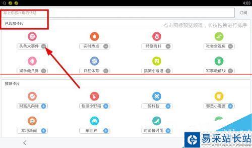 3、圖上框中的就是添加的卡片了,如果要刪除的話,可以點一下箭頭所指的位置!這樣添加卡片的時候就不會因為卡片過多而顯得特別的亂了!