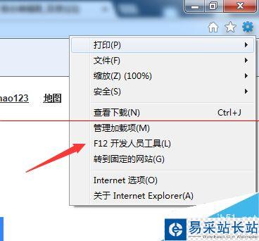 4、在剛剛的頁面下按下鍵盤的F12鍵。或者點擊設置。選擇開發人員工具。一樣是進入這個頁面下來。